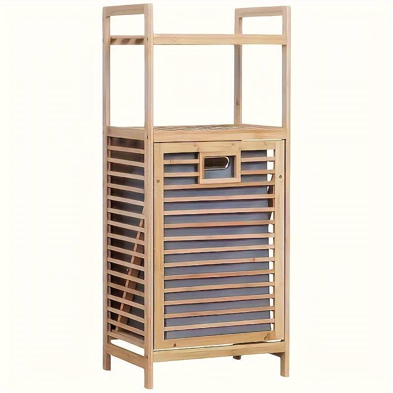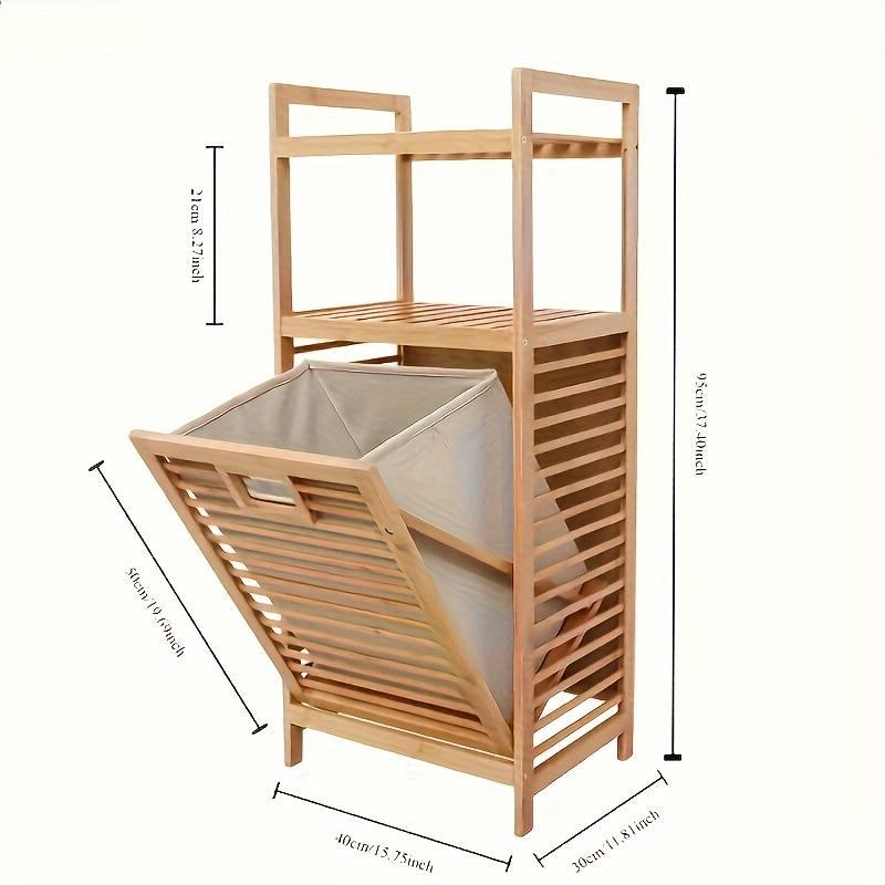 Cesto de roupa suja de bambú contemporâneo multi compartimentos