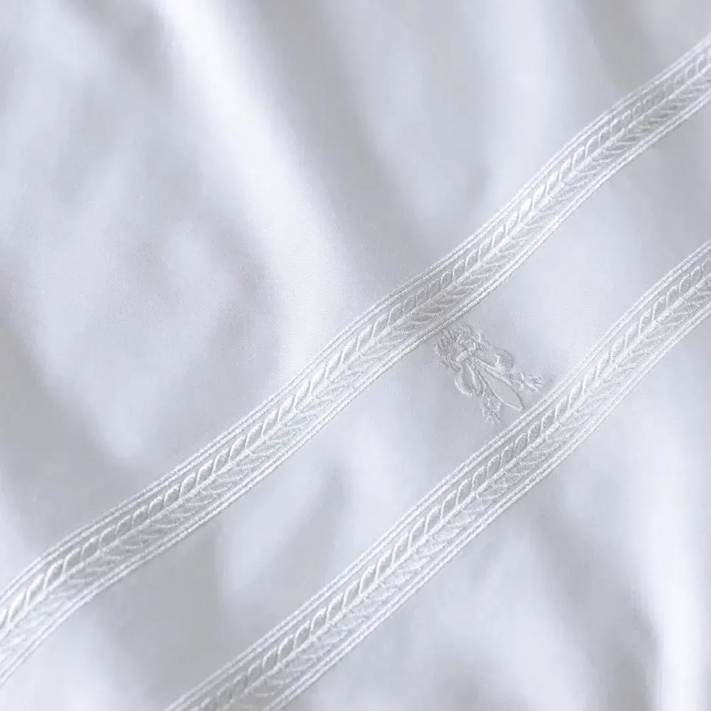 Diferenciais: Fronhas com 4 abas e bordado localizado, Dobra feita com bordado localizado, Lençol com elástico.