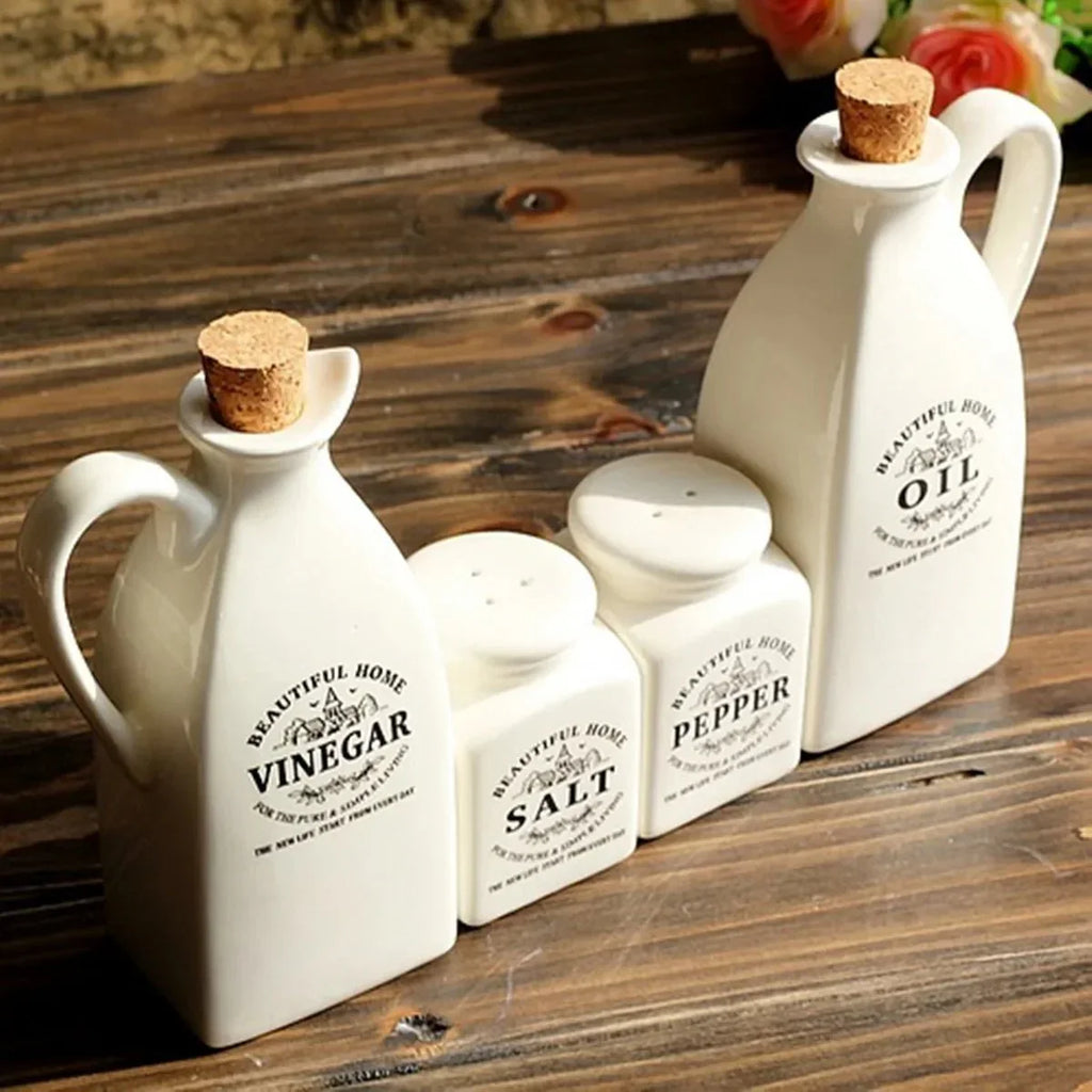 Com 4 potes de cerâmica com tampa de cortiça, este kit vai deixar seus temperos sempre à mão e sua cozinha mais charmosa e organizada.